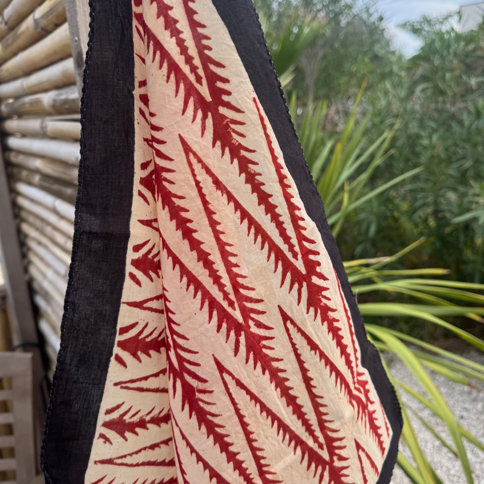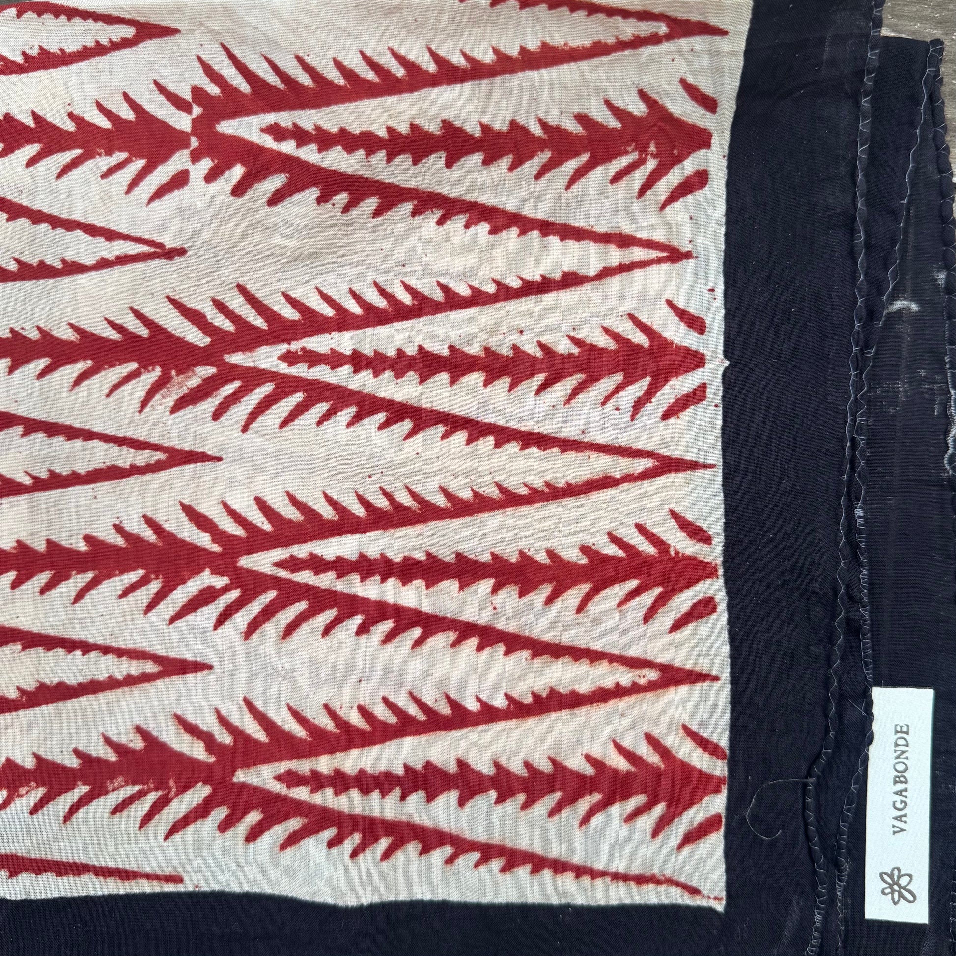 Imprimé à la main : réalisé selon la technique traditionnelle du block print en Inde. Chaque tampon en bois est appliqué à la main avec des teintures naturelles, donnant à chaque bandana un caractère unique.